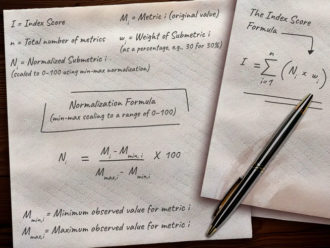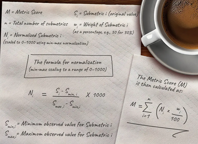- This creates a composite score by combining normalised submetrics with assigned weights