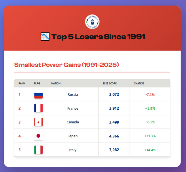 - The fall of Russia: from 7th to 11th in 30 years after 2022